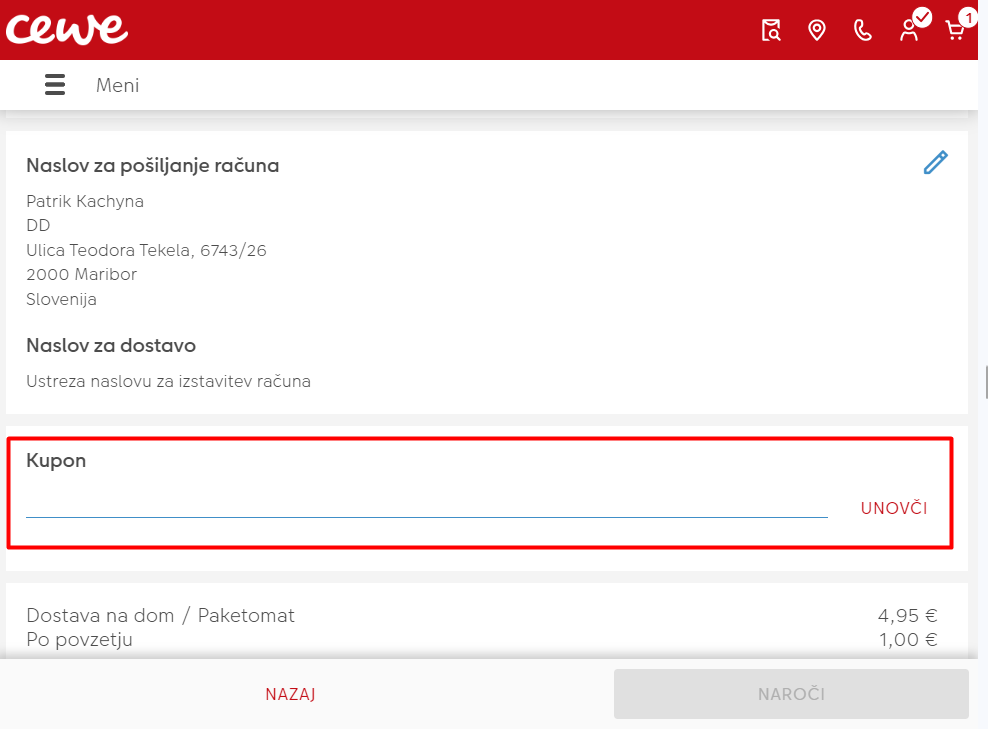 V spletni trgovini izberite želene izdelke – fotoknjige, koledarje, razvite fotografije ali druge personalizirane izdelke – in nadaljujte s plačilom. V polje za "Kupon" vnesite kopirano kodo s portala Tipli.si ter jo potrdite s klikom na "Unovči". Nato zaključite naročilo kot običajno.