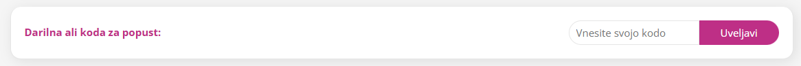 V spletni trgovini izberite želene izdelke, nadaljujte na blagajno in v polje "Vnesite svojo kodo" vnesite kopirano kodo s portala Tipli.si. Kodo potrdite s klikom na "Uveljavi", nato pa zaključite nakup kot običajno.